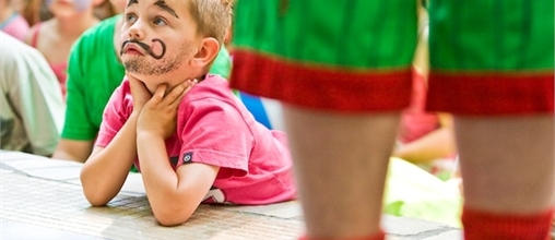 Les enfants attendent fébrilement que le rideau du théâtre de marionnettes s'ouvre. L'histoire peut enfin commencer ! Comme en témoignent leurs rires et leurs cris, ils vivent l'histoire avec passion.