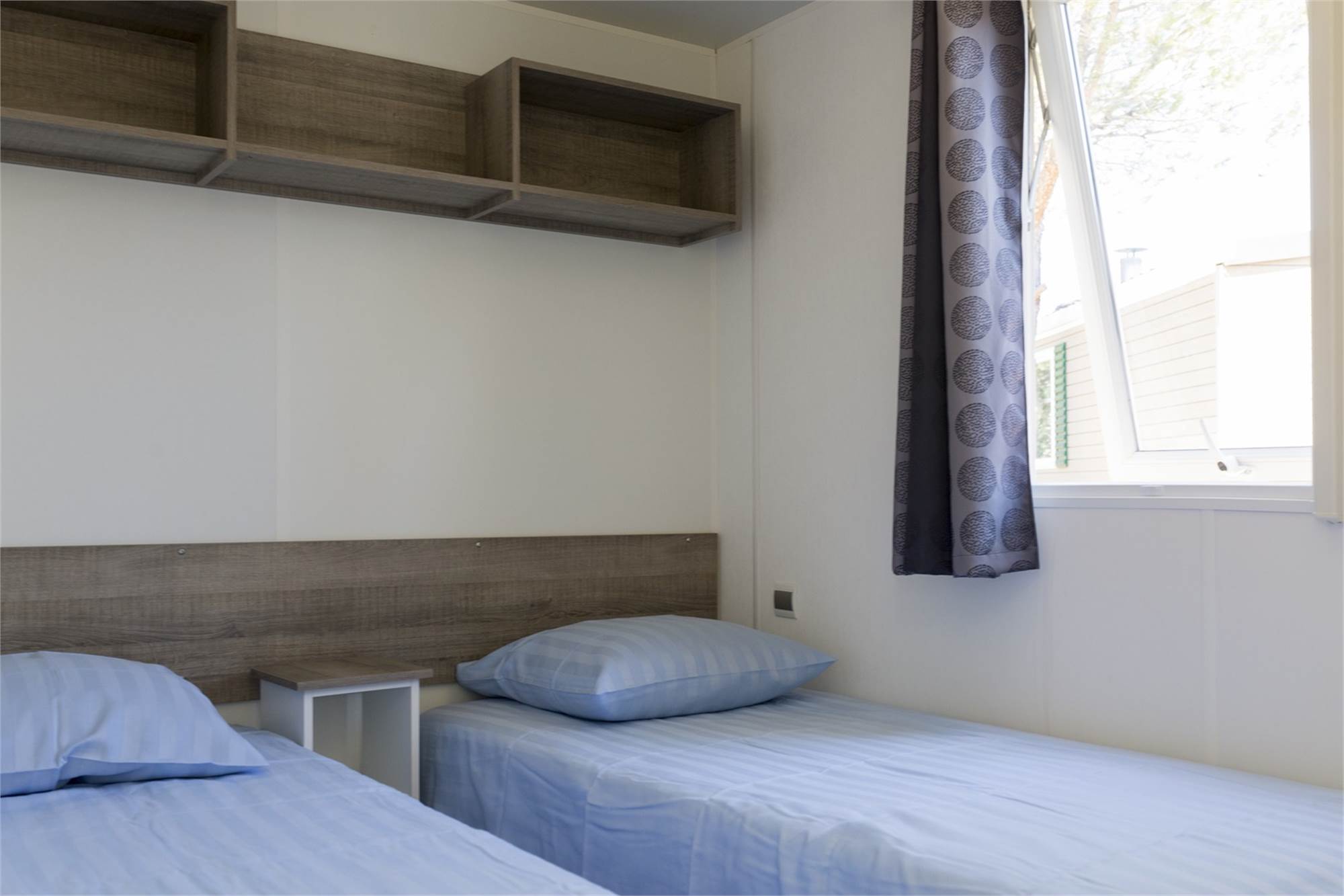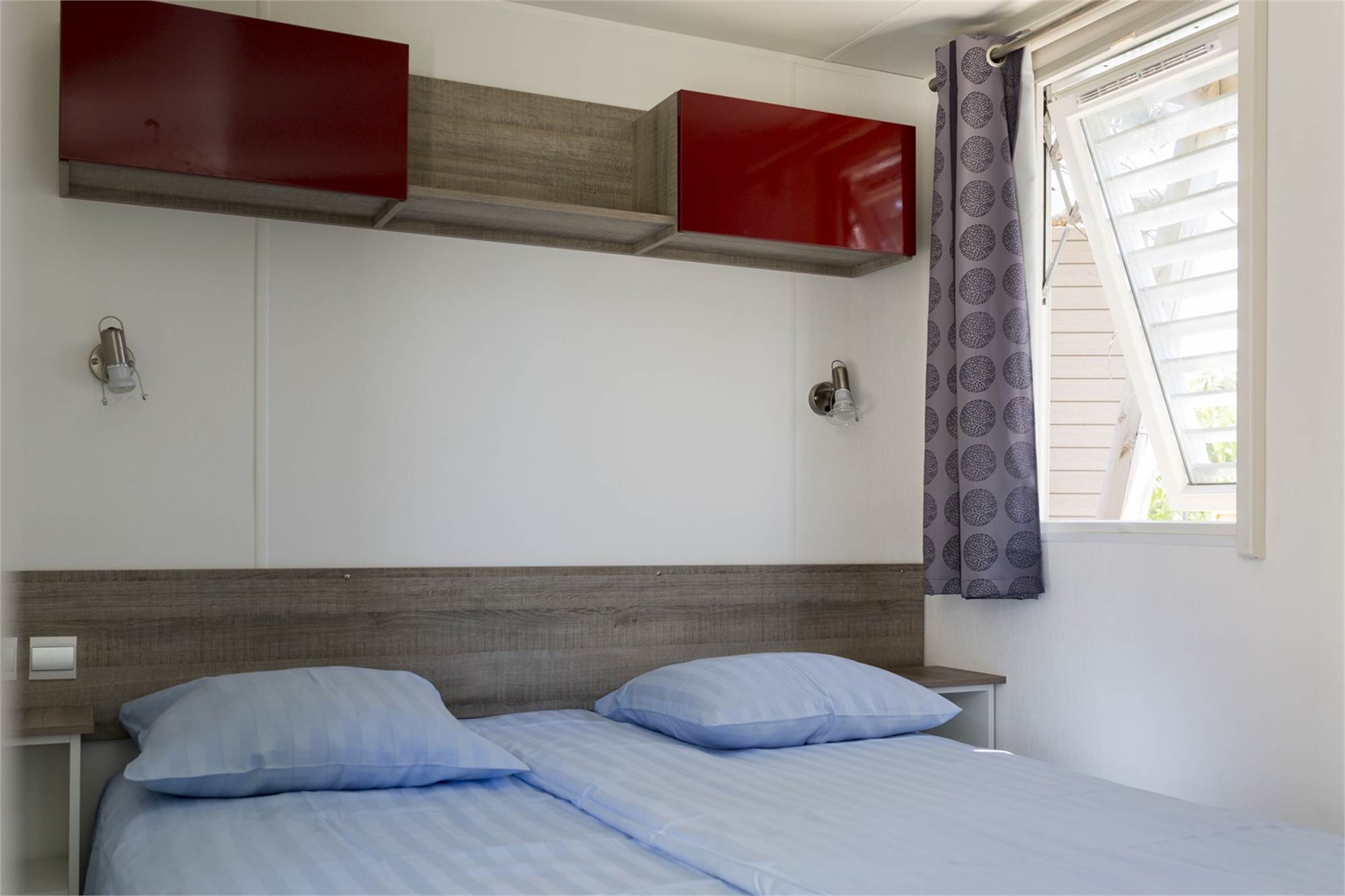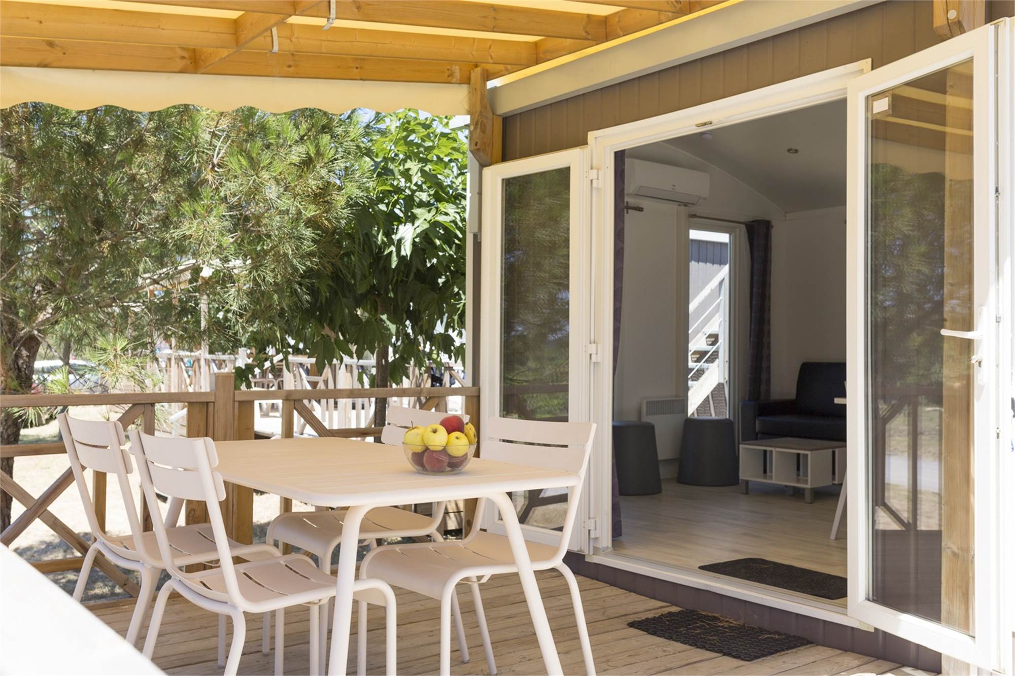 Generalite/Situation Amenagements Specifiques Portes donnant sur la terrasse Coin-repas pour 4 personnes Doubles portes donnant sur la terra Poêle électrique Air conditionné Mobilier de jardin Mobilier de jardin Parking près de l'hébergement Terrasse en bois véranda Transats Audio/Video/Electronique Accès Wifi sur tout le camping Cuisine Cuisine américaine basique Hotte aspirante Cuisine américaine moderne Plaque de cuisson à 4 feux (gaz) Lave-vaisselle cafetière Senseo Combiné four/ micro-ondes Chambre Couettes Nombre de chambres: 2 Sanitaires Douche Toilettes séparées Lavabo dans la salle de bains Caracteristiques Specifiques Animaux domestiques Non fumeurs