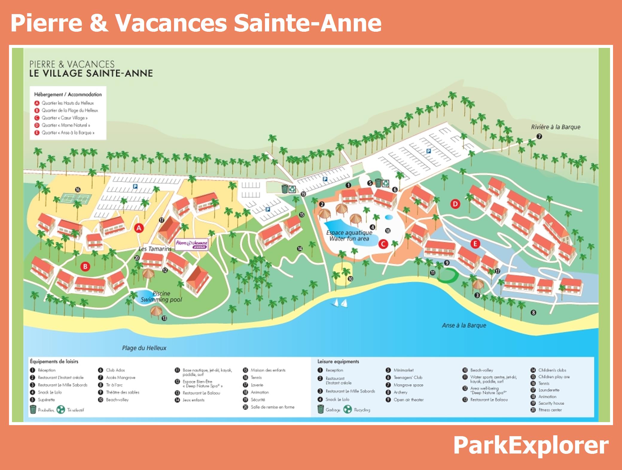 Le plan actuel du Pierre & Vacances Sainte-Anne avec tous les hébergements et installations, est aussi disponible en pdf.