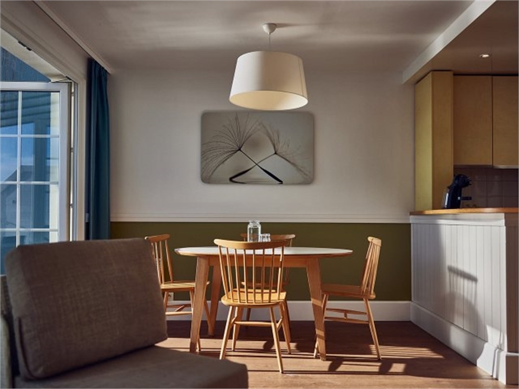 Asseyez-vous sur votre terrasse privée couverte et profitez de la vue panoramique sur le lac. Tous les cottages Lakeside sont situés au bord de l'eau. À l'intérieur aussi vous avez une belle vue, grâce aux grandes fenêtres !