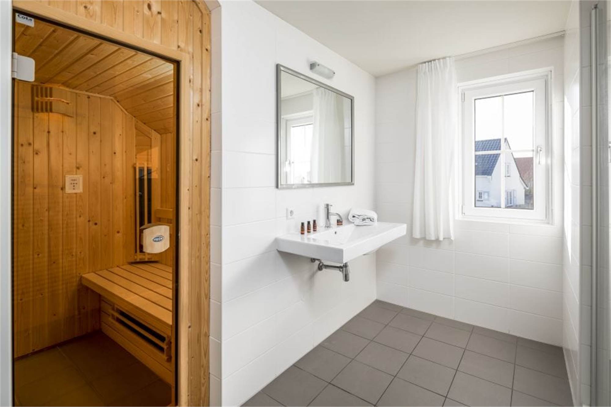Cette villa de luxe individuelle est adaptée pour 4 personnes. Par le biais du hall vous entrez dans le salon avec chauffage au sol et portes françaises donnant sur la terrasse chauffée. Il y a une cuisine entièrement équipée avec lave-vaisselle, micro-ondes combiné et un réfrigérateur / congélateur, débarras et des toilettes au rez-de-chaussée. De plus, il y a un ensemble chaine hi-fi avec lecteur DVD et un accès Internet gratuit. Au premier étage se trouvent deux chambres, dont une avec TV, une salle de bains avec douche, des toilettes séparées et un sauna infrarouge. Si vous apporter vos vélos en vacances, vous pouvez les stocker dans la remise extérieure.