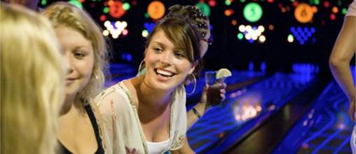 Profitez d'un bon petit verre tandis que vous essayez de réaliser un strike sur notre piste de bowling. Celle-ci est plongée dans une ambiance de boîte de nuit, avec de la musique et des spots multicolores.